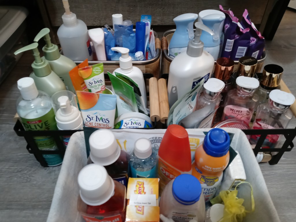- Cleaning Supplies – laundry items, gloves, rags, cleaning solutions, disinfectants, dusters, etc.