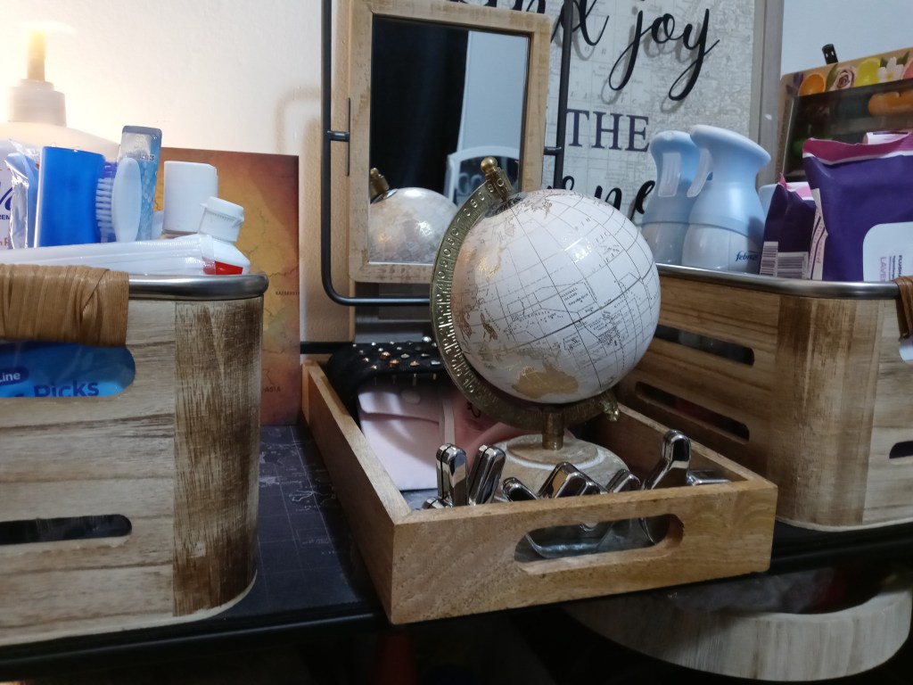Before you place everything back into your bins it is wise to sort the items into like groups. For example, create piles for hygiene items, cleaning supplies, makeup, jewelry, etc. This will help you to see much or how little of each category you have, and it will give you a rough estimate of what will take up the most space.